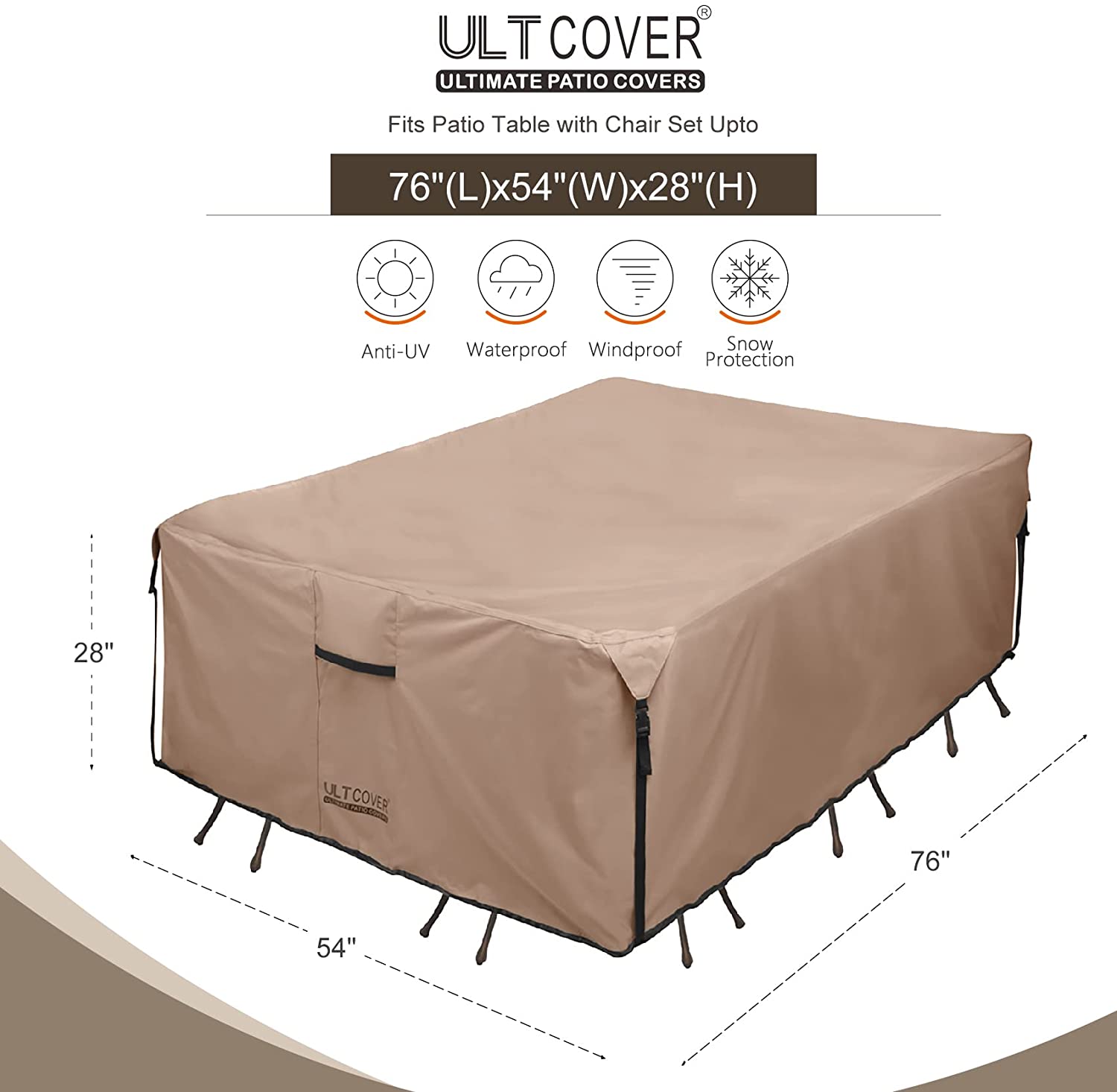 + Free ShippingGuaranteed to fit rectangular/oval patio table and 2-4 standard chairs size up to 76″(L)x54″(W), Actual cover size is 78″(L)x56″(W)x28″(H). Please be remind the include distance that chair backs jut out from the table while measuring.